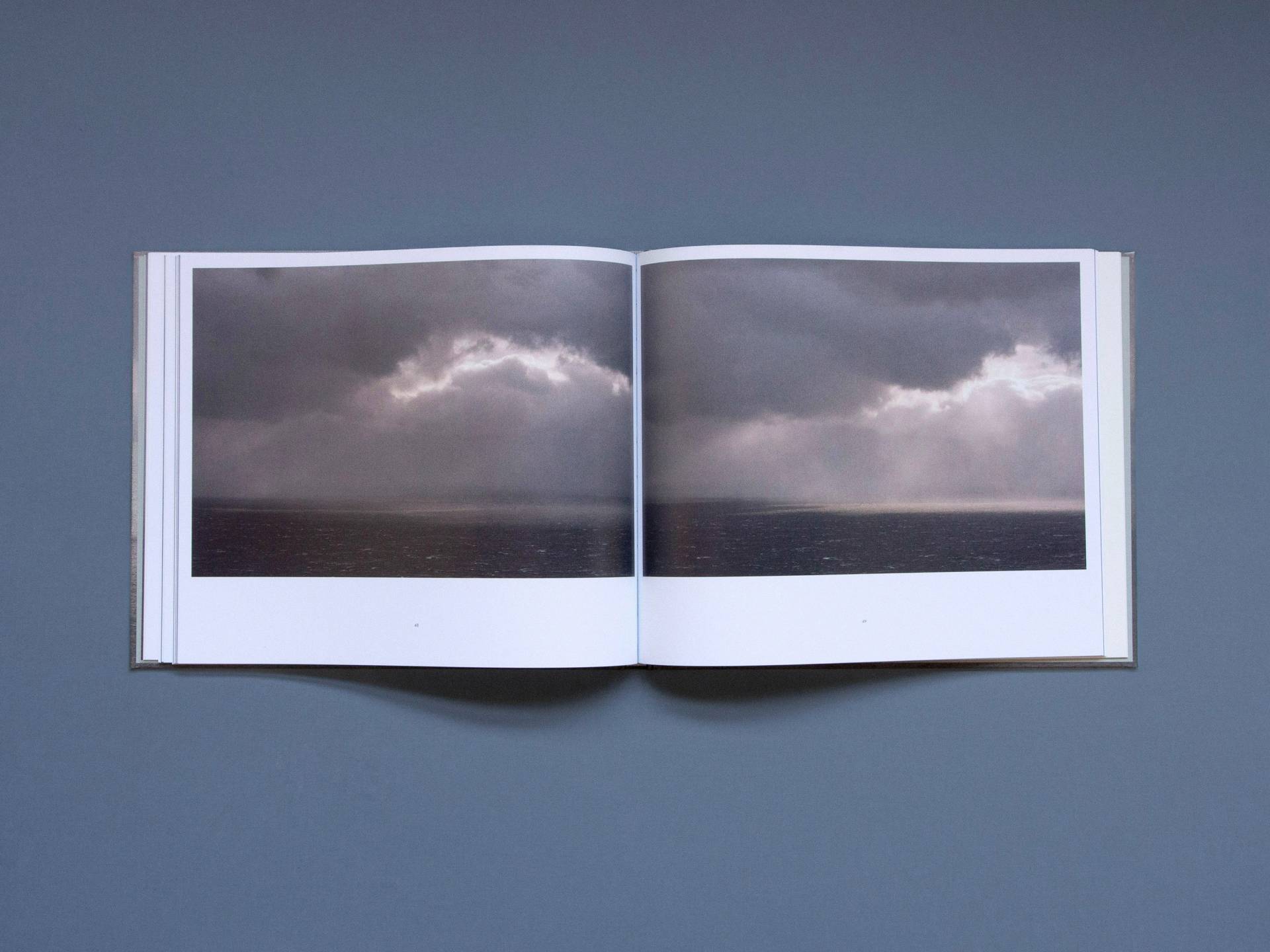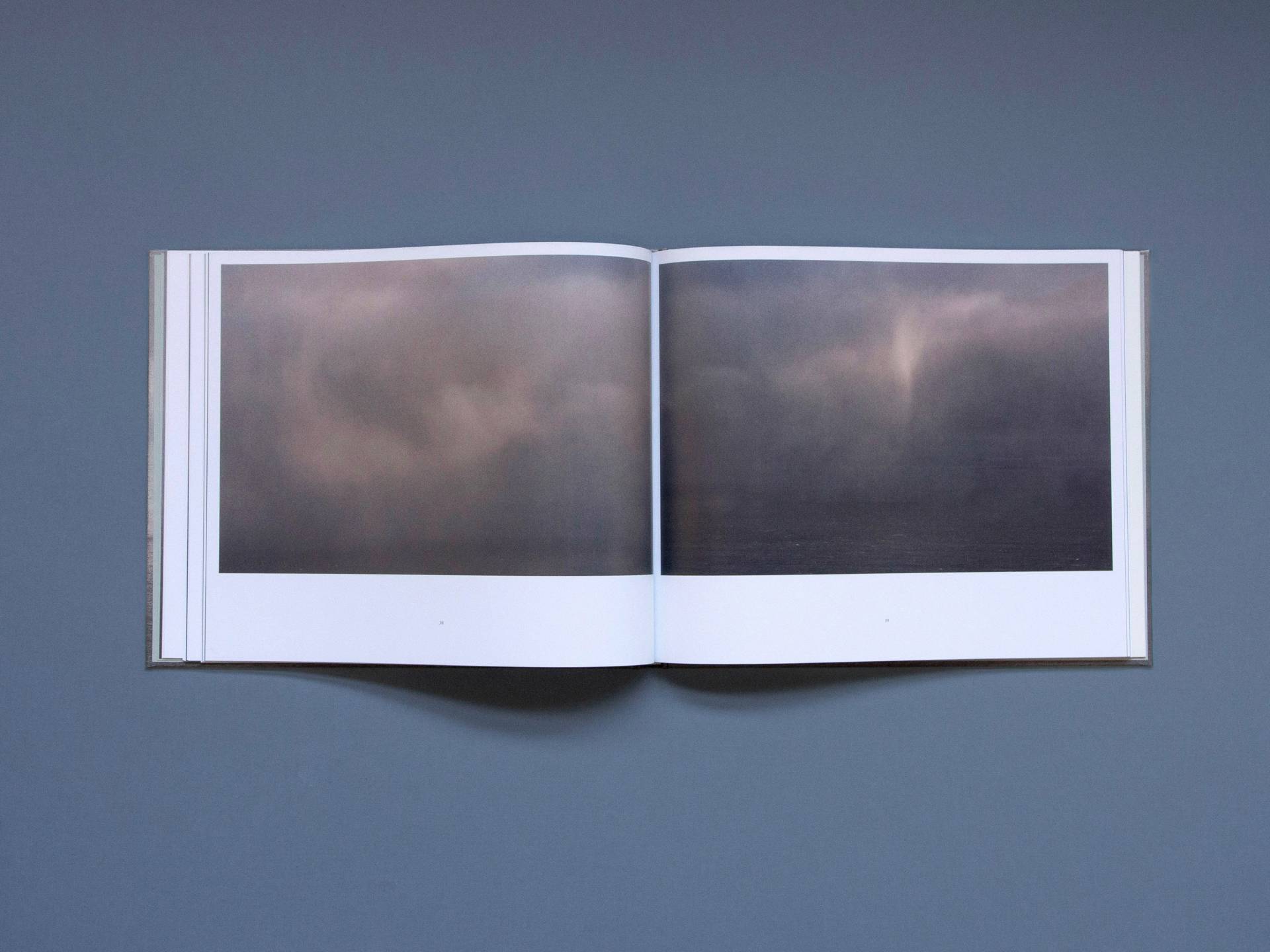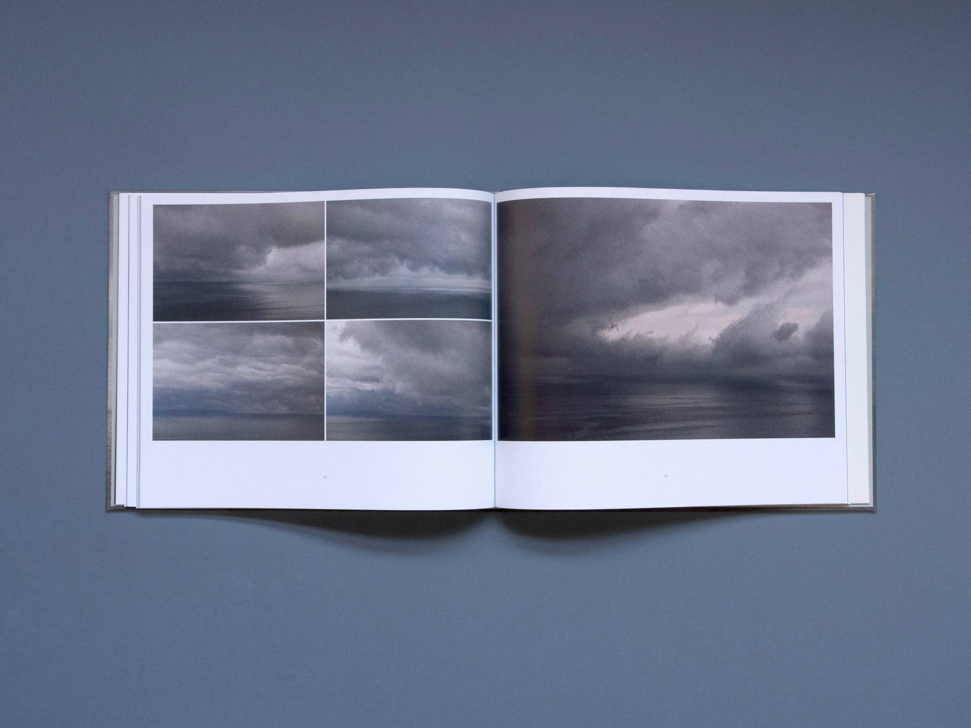 H2O-scapes by Sylvie Leblanc are photographic studies of the sky and the water, created between 2009 and 2023 in La Malbaie, Canada. All fifty-seven photographs were taken from the same location and depict the various physical states of the water in and above the Saint Lawrence River. Sometimes the landscape is entirely shrouded in fog without any visible horizon line; sometimes the outlines of islands are visible. Dramatic cloud formations, drifting ice floes or soft waves: Leblanc's landscape remains the same and yet is presented in a multitude of different ways. Her photographs transform the dynamic play of the water molecules into a moment of stillness—and a space for dreams and contemplation.