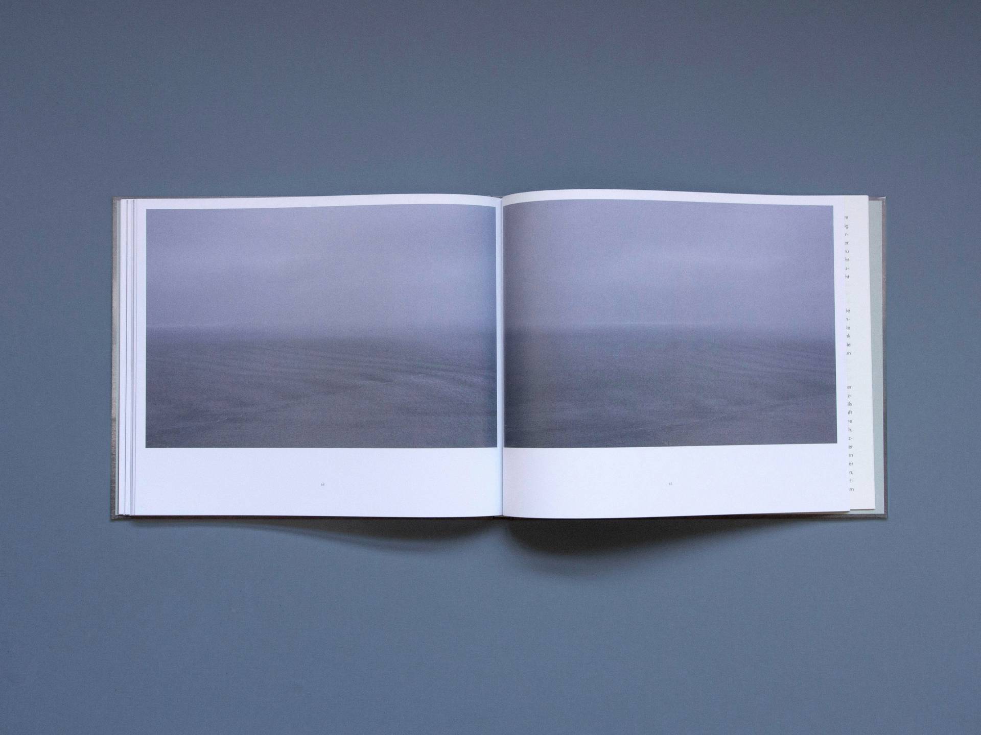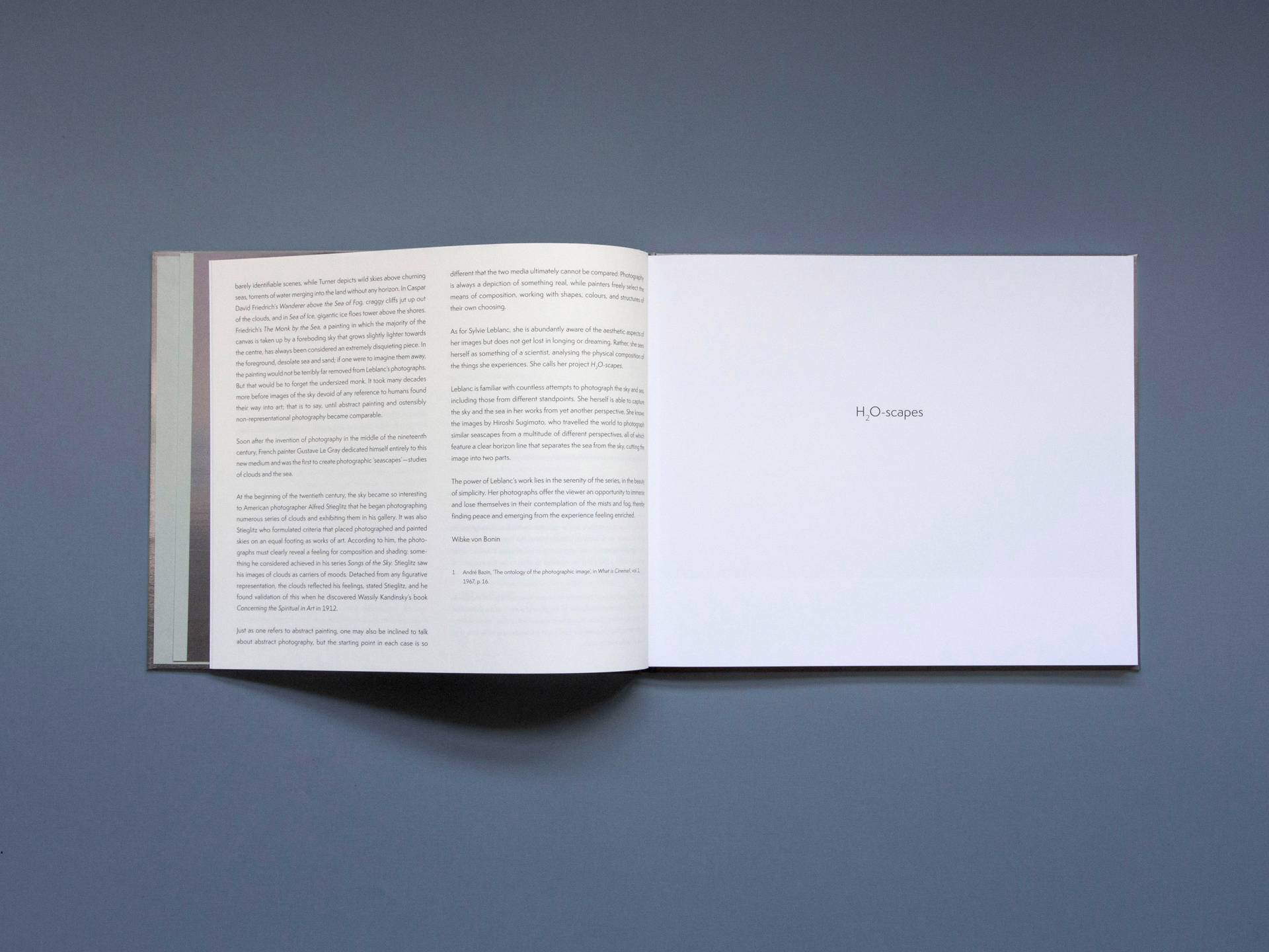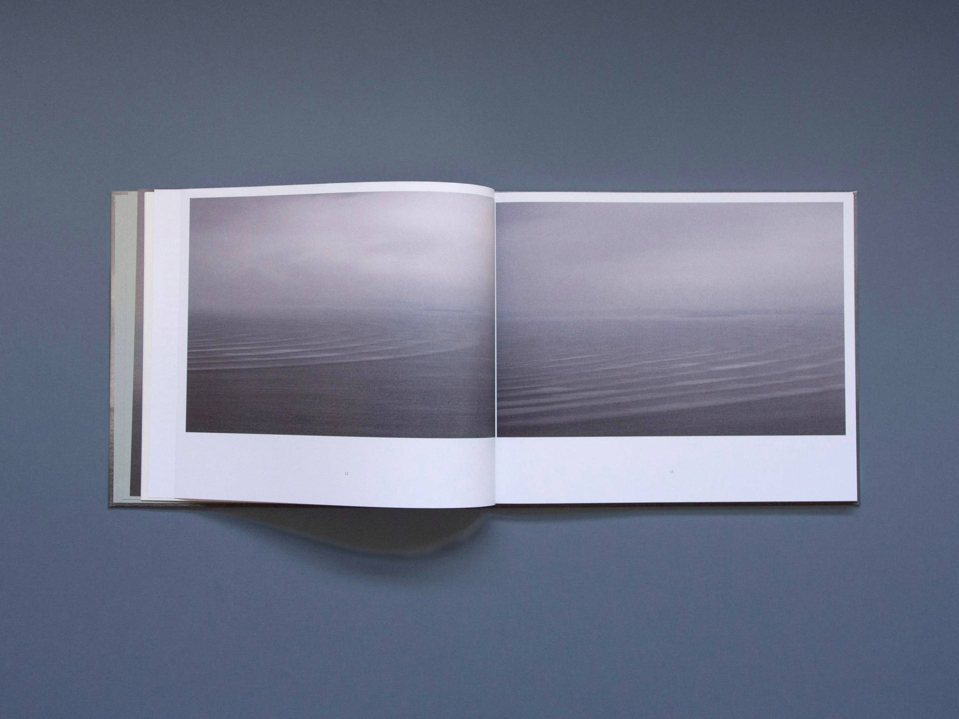 H2O-scapes by Sylvie Leblanc are photographic studies of the sky and the water, created between 2009 and 2023 in La Malbaie, Canada. All fifty-seven photographs were taken from the same location and depict the various physical states of the water in and above the Saint Lawrence River. Sometimes the landscape is entirely shrouded in fog without any visible horizon line; sometimes the outlines of islands are visible. Dramatic cloud formations, drifting ice floes or soft waves: Leblanc's landscape remains the same and yet is presented in a multitude of different ways. Her photographs transform the dynamic play of the water molecules into a moment of stillness—and a space for dreams and contemplation.