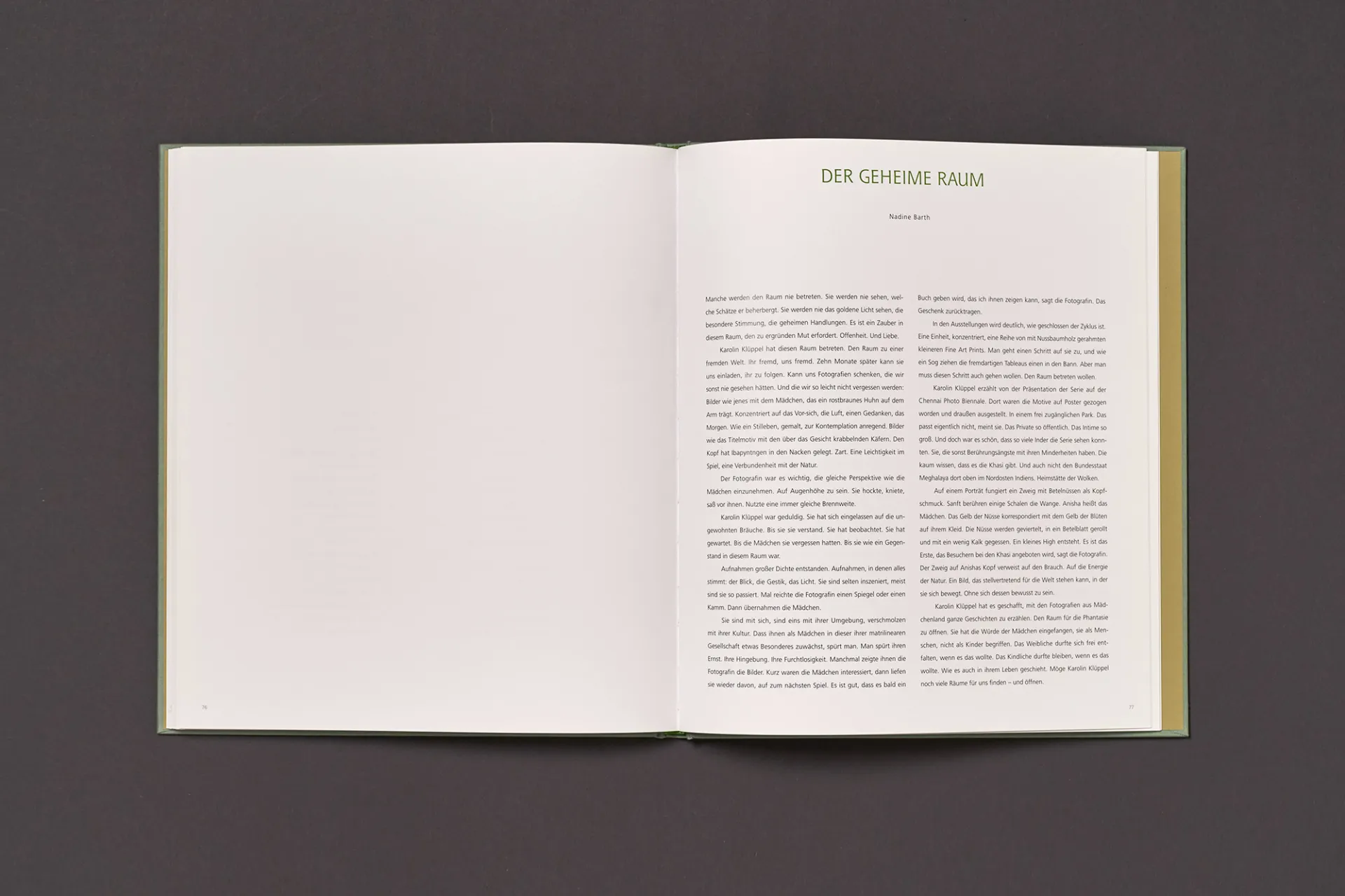 Karolin Klüppel (*1985 in Kassel) can already look back at a body of creative work that enjoys a wide range of enthusiastic reviews and awards. This extraordinary resonance is due to the elegant alternation of her photographs between documentation and composition as well as her marked sense of impressive subjects. The pictures in the Kingdom of Girls series stand out not only due to their powerful and contemplative aesthetic, they also tell a story. The girls’ faces reveal the lifeworld and culture of the Khasi, an indigenous people in the Indian state of Meghalaya with a matrilineal social system: the youngest daughter is given preference in the order of succession. When she marries, her husband moves into her family’s home, the children receive the mother’s name. Only the birth of a daughter guarantees the continuity of the clan. Between 2013 and 2015, the photographer spent a total of ten months in the Khasi village of Mawlynnong, where she captured these magical images.