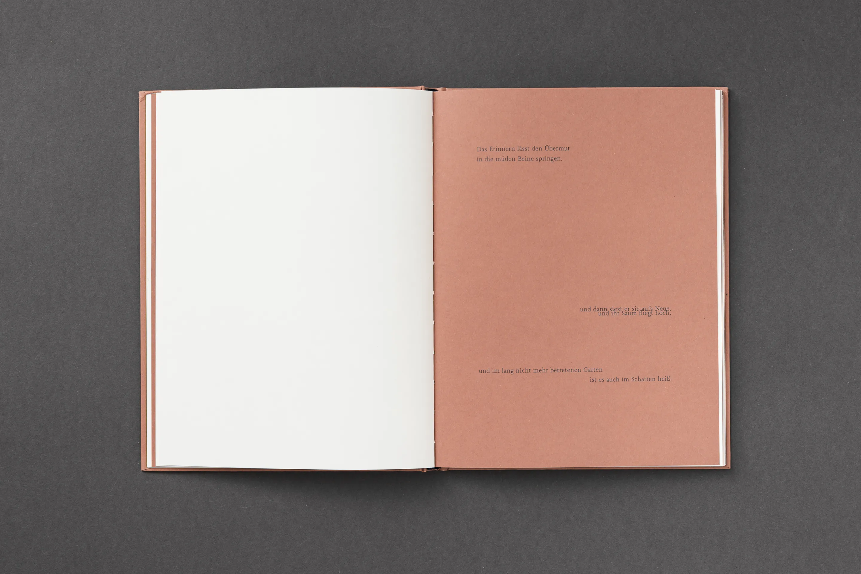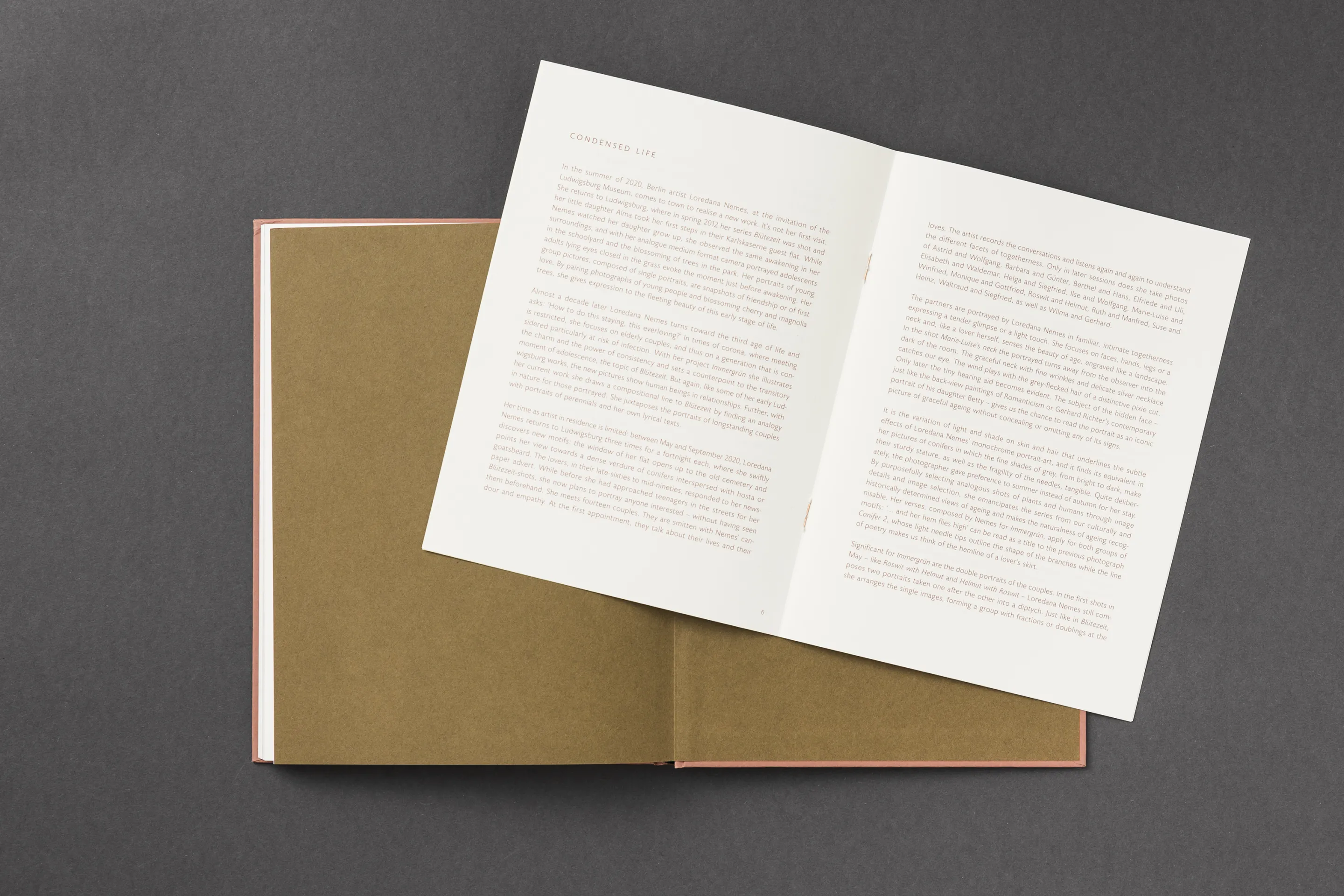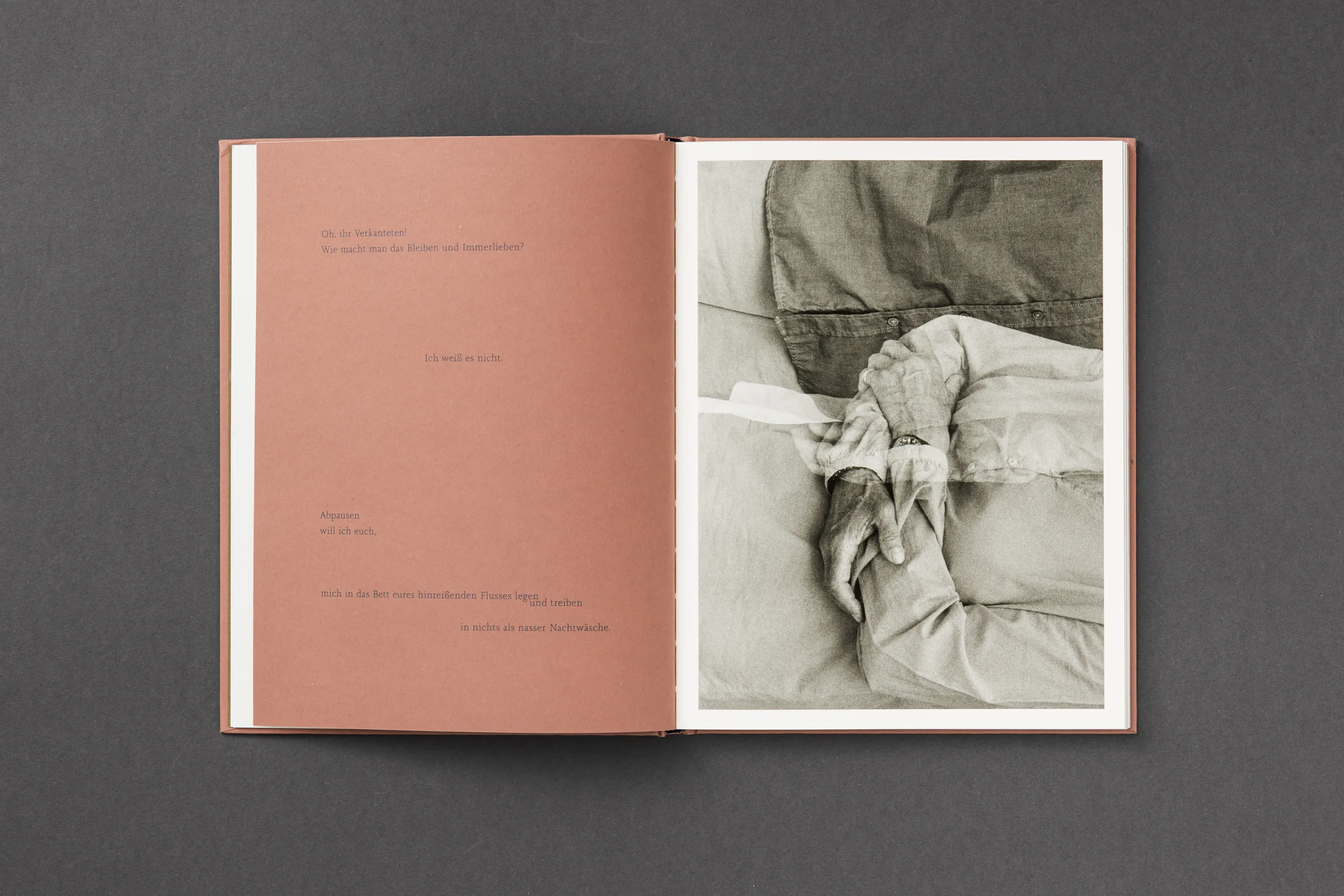 Old people are not an ideal of beauty in our culture. The representation of old age in art and media can be described as taboo. The couples Loredana Nemes has spoken to and photographed are women and men whose love and intimacy she captures in analogue double exposures, visualising, as it were, the fading and passing of us all. Her poetic images and poems are a tribute to age and love as well as a celebration of human encounter in times of social distance. The result is a sensitive artist's book that also creates a multi-layered whole in the selection of materials and the narrative flow.