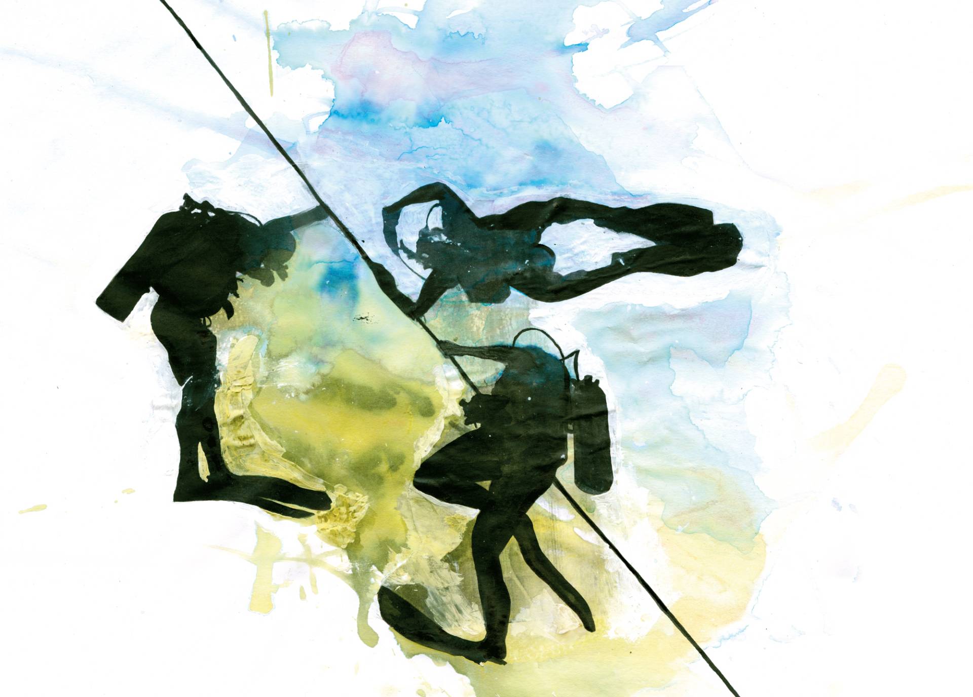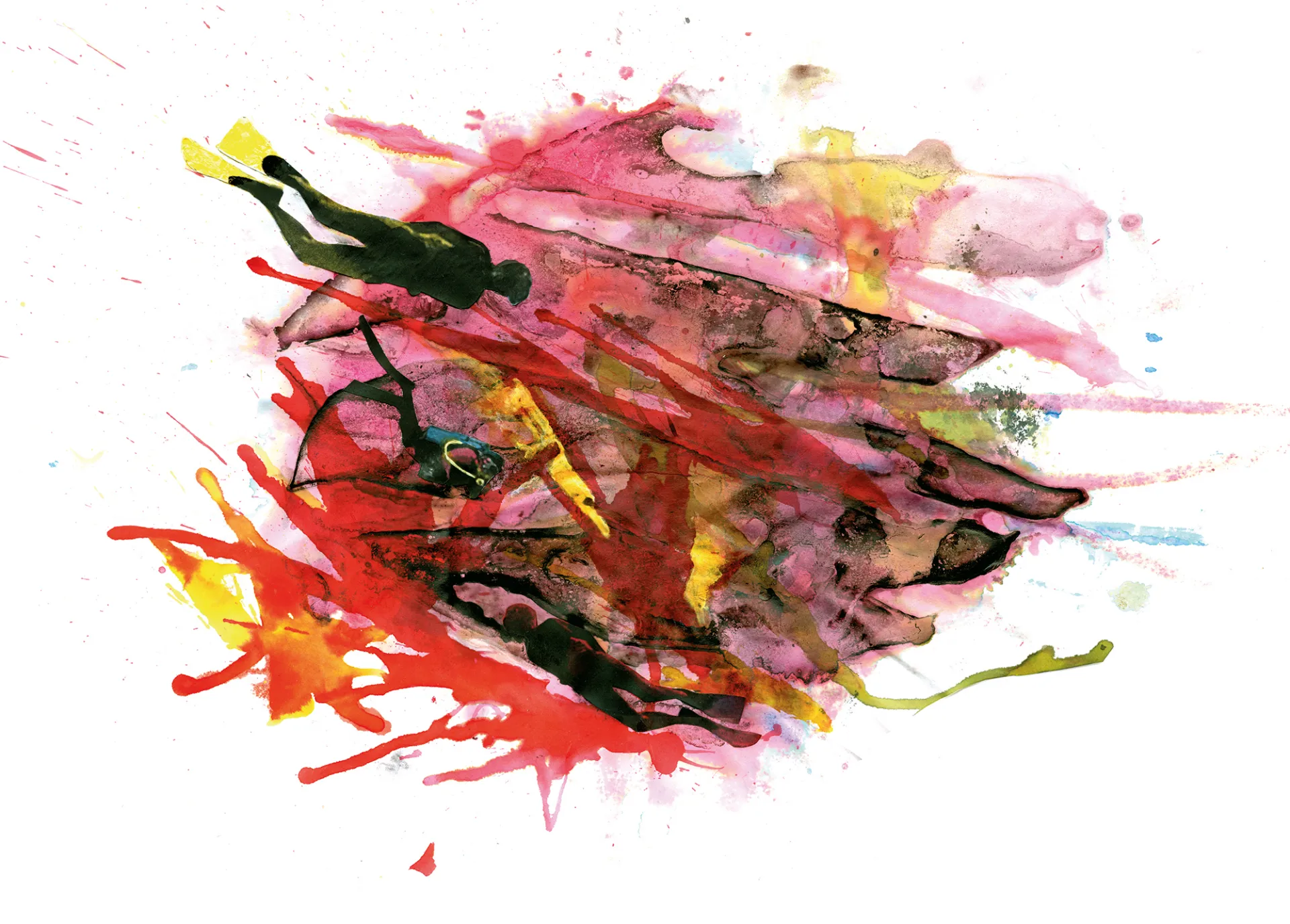 Coral Divers — illustration Illustration of the fascinating underwater world with coral divers. Technique: watercolors and collage