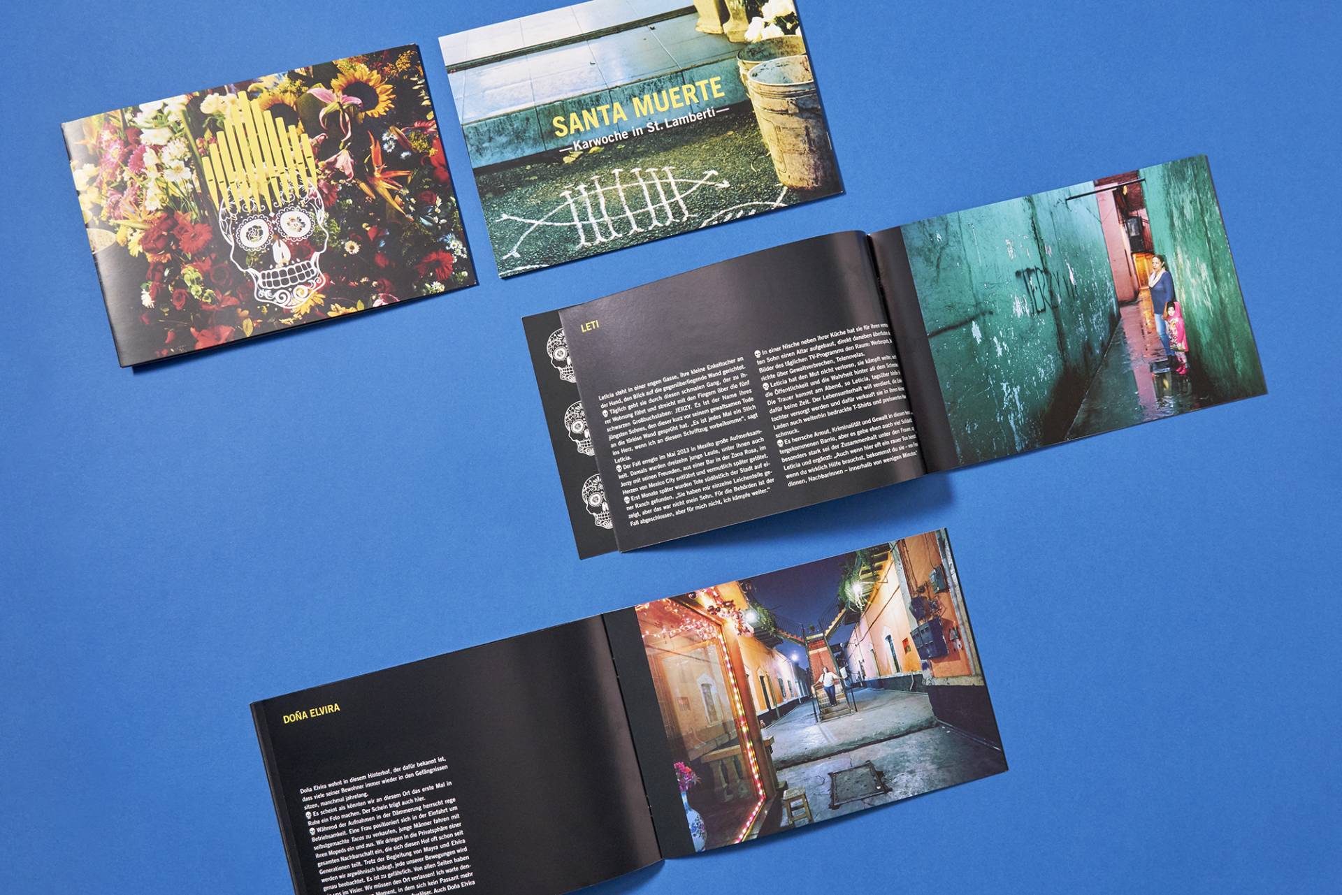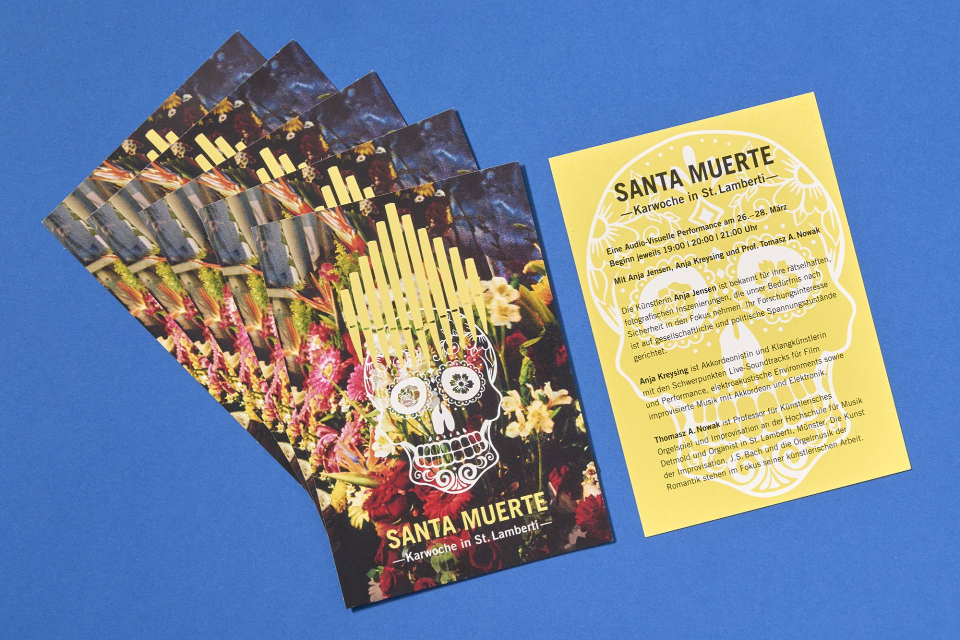 Illustration and Design for the poster, flyer and booklet concerning the concert and exhibition »Santa Muerte« at St. Lamberti Münster. An audovisual performance by Anja Jensen (photographies), Anja Kreysing (accordion) and Prof. Tomasz A. Nowak (organ).