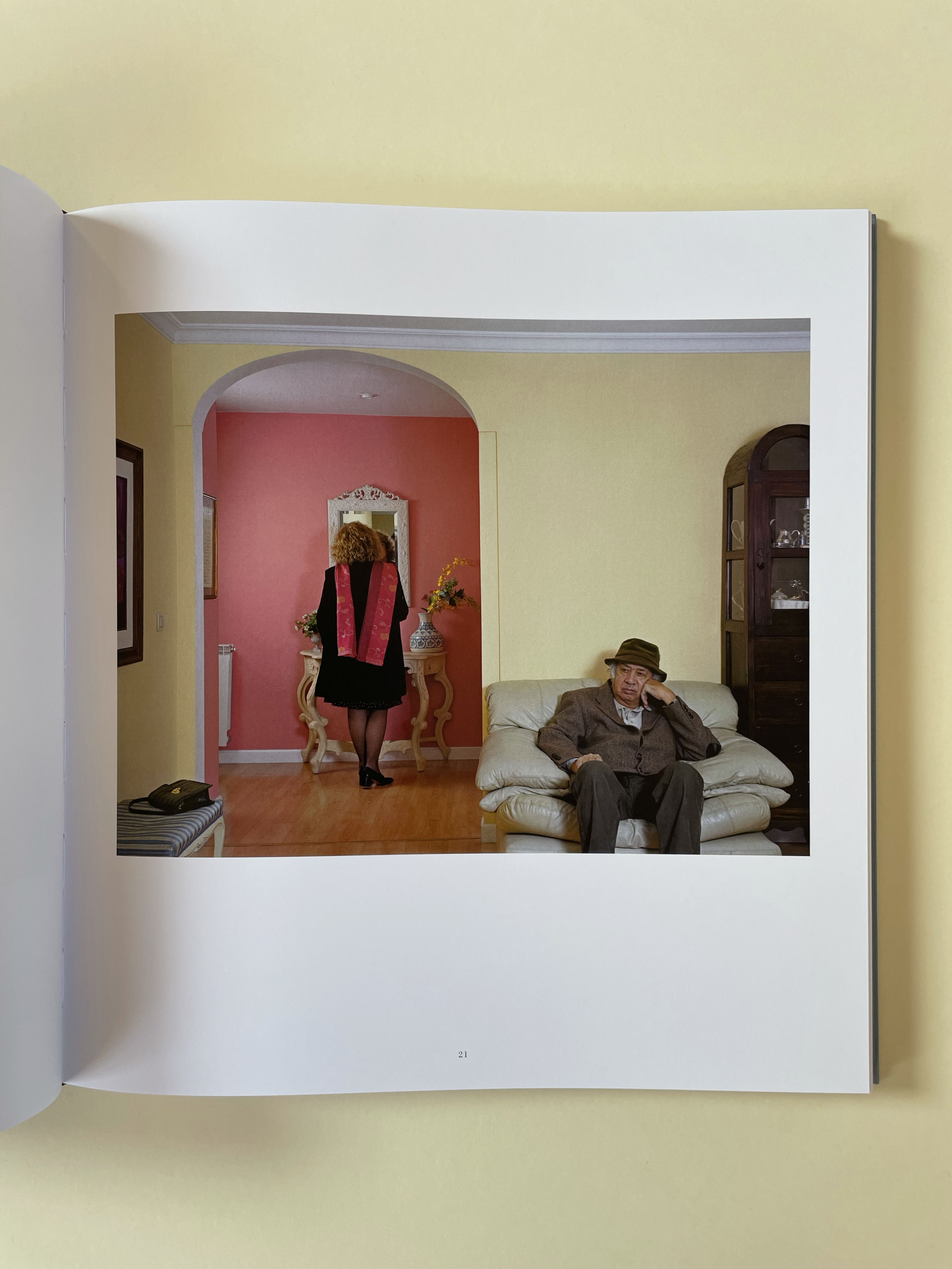 Archipelago (2004–2014) focusses on the contradictions of human relationships across countries, generations, and genders. Yolanda del Amo explores how our longing for closeness coexists with our desire for individuality. The relationship between the people in her images defines itself through the setting that conversely becomes a psychological extension of the characters. Archipelago raises questions about class, gender, intimacy, and the social connectivity of our times. Yolanda del Amo draws inspiration from real life by working with sitters who are her friends or family and adds a theatrical dimension through her directorial approach, resulting in a fusion of reality and fiction.